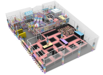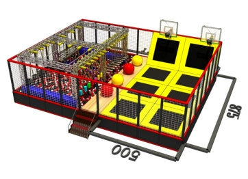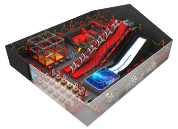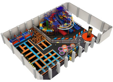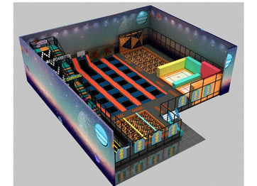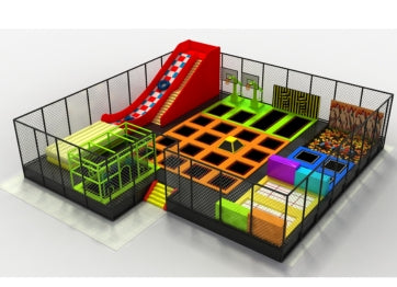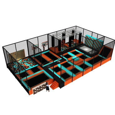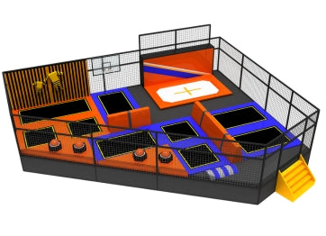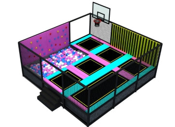 Our trampoline park system have multiple functional modules such as a free bounce area, foam pit, dodgeball area, climbing wall, slam dunk area, ninja path, slides, and so on.